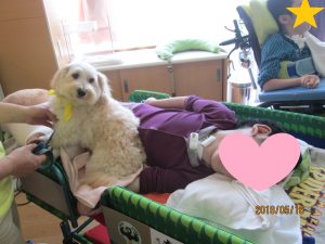 2病棟のみんなは犬に触れるのも初めての人も多く、ドキドキでした。