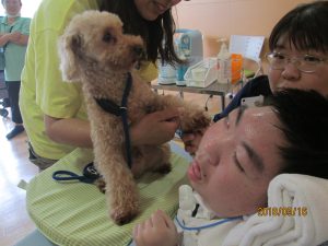 2病棟のみんなは犬に触れるのも初めての人も多く、ドキドキでした。