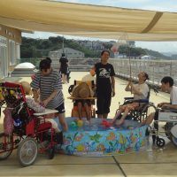 終わってから、プレイルームに出ることができなかった短期入所中の利用児のベッドサイドで1曲演奏してくれることになり、本人も「聴きたい」ということで3ステージ目は観客1人のスペシャルステージとなりました。