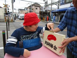 職員がそんな場面に感極まり涙ぐんでいると利用者がニコニコして次の募金してくださる方を