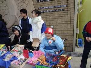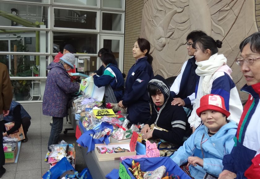 11月3日(土)に小さき花の園正面玄関前にてバザーを行いました。隣接する七里ヶ浜ホームのバザーも同日に行われ、地域の方々が沢山いらっしゃいました。当日、ボランティア活動で清園女学園の学生さんも参加し、バザーのお手伝いをしてくださりました。