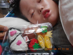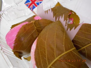 粘土で桜餅を作りました。桜餅の葉は本物で香りをたくさん楽しみました