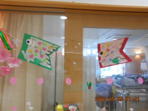 第2病棟では先週こいのぼりを制作して各居室で泳いでいます。立派な5月人形も飾りました!皆元気に楽しく毎日を過ごしています。