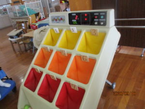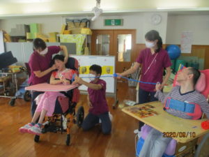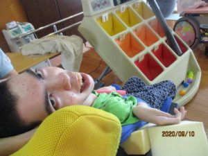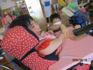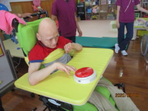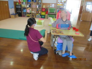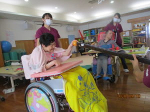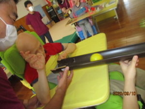 メインはボール転がし。自分の力が発揮できるようにいろいろな方法で行います。