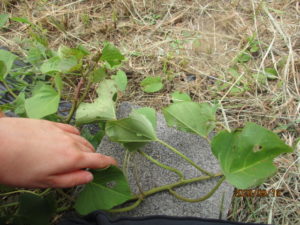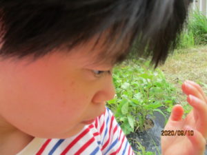 水やりしましょう。風船かずら、終わったと思ったら、実ができている!