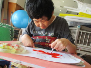 音楽の前に大好きな色塗り!えのぐよ。