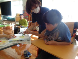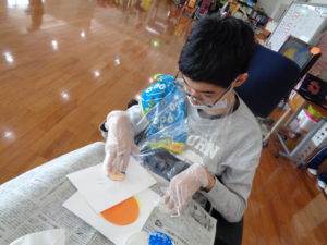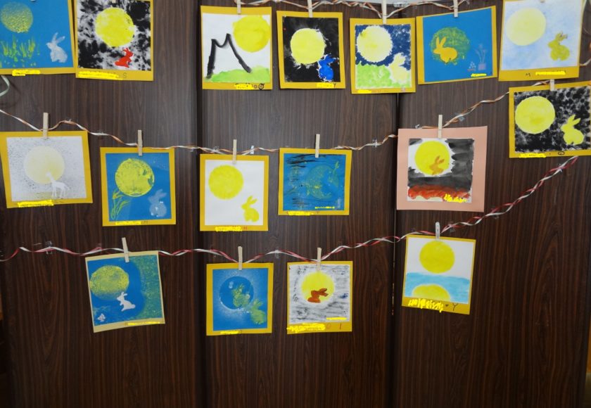 園から10月の活動紹介です。10月はお月見をして過ごしました。制作活動では秋をテーマにした風景画を皆で作りました。