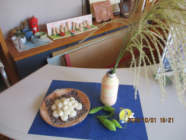 団子、すすきと一緒に飾ったよ。