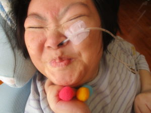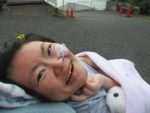 さあ、制作開始。私、白い毛糸にしたの。手でおさえて、木にまいていくの。見てるだけでも面白いわ。
