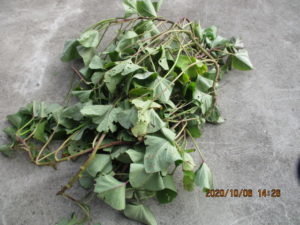 今日はサツマイモのつるを切り取りました。