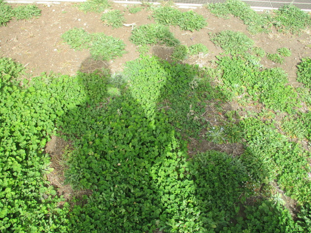去年、種をまいたクローバー。ところどころ、まばらになっていますがよく育っています。