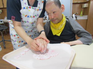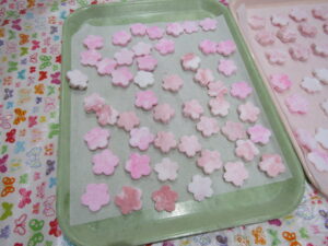 今日は男子が集まって石鹸作り。石鹸の材料を混ぜて、もみもみ。次はアロマオイル入れてもみもみ。食紅入れてもみもみ。丸く丸めて、のし棒でのばしてのばして。桜の型で型抜きして出来上がり!かわいい袋に入れてホワイトデーに女子に渡します。