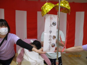 進級お祝いでくす玉を割りました!勢い良く、くす玉の紐を引っ張ったり、大きな声でくす玉を割ろうと頑張る姿に、今後の学校生活に期待が持てます。