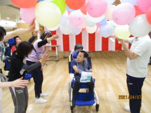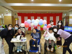 今年進級したピカピカの3名の利用者さんをお祝いしました。
