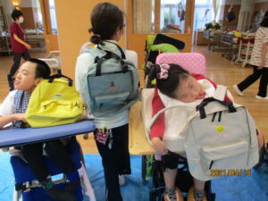 小さきからのお祝いは登園バッグです!職員が利用者さんのイメージに合った色とデザインを考えました。さらに刺繍も名前も入れ、世界に1つしかない、特別なバッグとなりました!