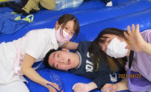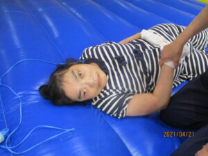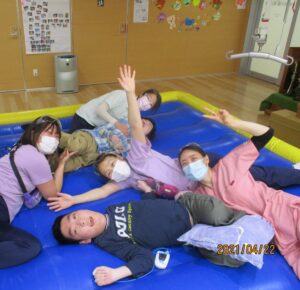 第2病棟は保育士が1週間療育活動を考えて展開していきます。今週はエアトランポリンをして楽しみました!