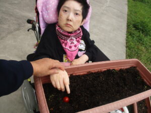 プチトマトを丸ごと植えました。さて、どうなるか。楽しみ、楽しみ!