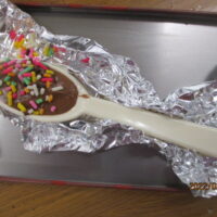 チョコ作り。チョコの甘い香りにうっとり。最後はちょこまみれになちゃった!。