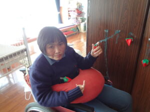 折り紙でいちごを作りいちご狩りごっこをしました。