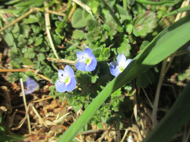 春を見―つけた!青い花があちらこちらに。「オオイヌノフグリ」って名前なんだ。