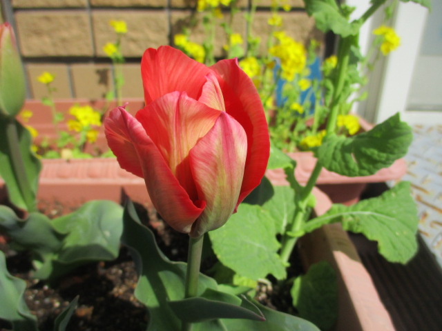 チューリップの花が咲きました。昨年咲いたチューリップで出来た球根が花開きました。これから次々と花が開きます。
