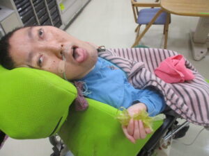 パン粉やスズランテープ触るのはどうも。僕はボール遊びがいいな。