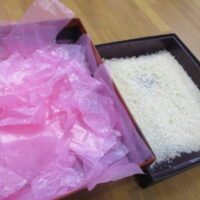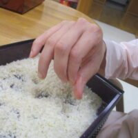 今日はあいにくの雨。室内でもできるハスの植え付けをしました。