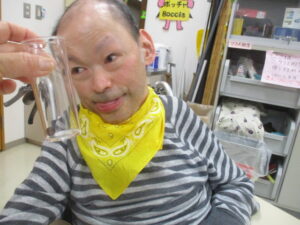 そして、水の入ったコップに入れて、芽が出るまで待ちます。