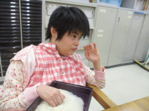 パン粉はずーっと手入れてよいけど、すずらんテープはすぐ手引っ込めてしまった。