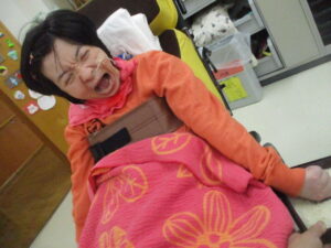 今回の感触遊びはパン粉とすずらんテープ。パン粉の感触が人気です。