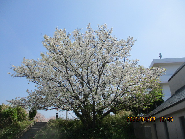 お御堂の裏にある白い桜の木が満開です。