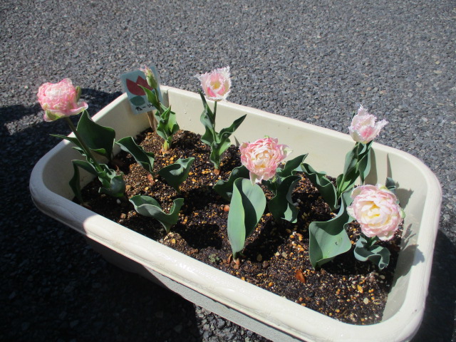 去年咲いたチューリップの球根でピンクのチューリップも咲きました。