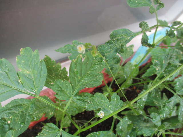 風船かずらの花が咲きました。今年は元気で勢いよく伸びています。