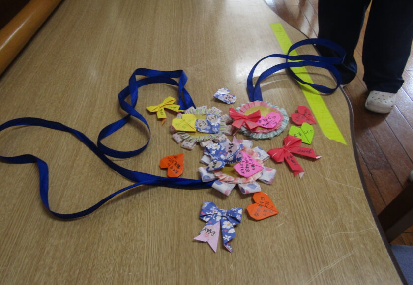 利用者から宜しくシールをもらって、ペンダントにつけます。