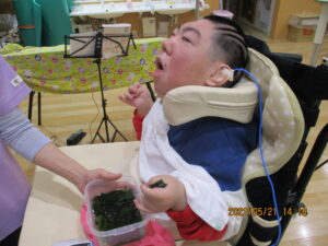 第二病棟では、利用者様の五感を刺激する療育活動の一環として、巷でも大人気のニンテンドースイッチと、本格的な疑似体験が出来るVRゴーグルを活用しています。