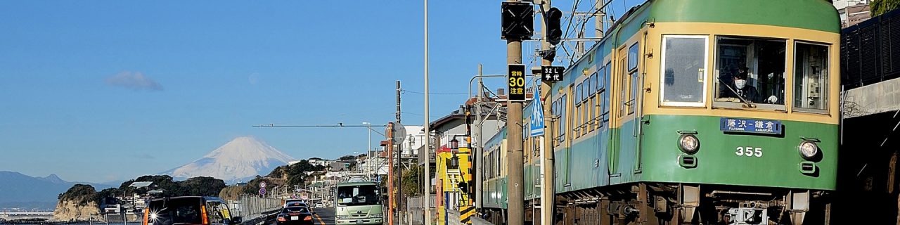 江ノ電藤沢駅より乗車、鎌倉高校前駅下車
