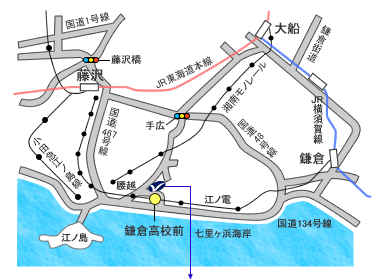 江ノ電鎌倉駅より乗車、鎌倉高校前駅下車
